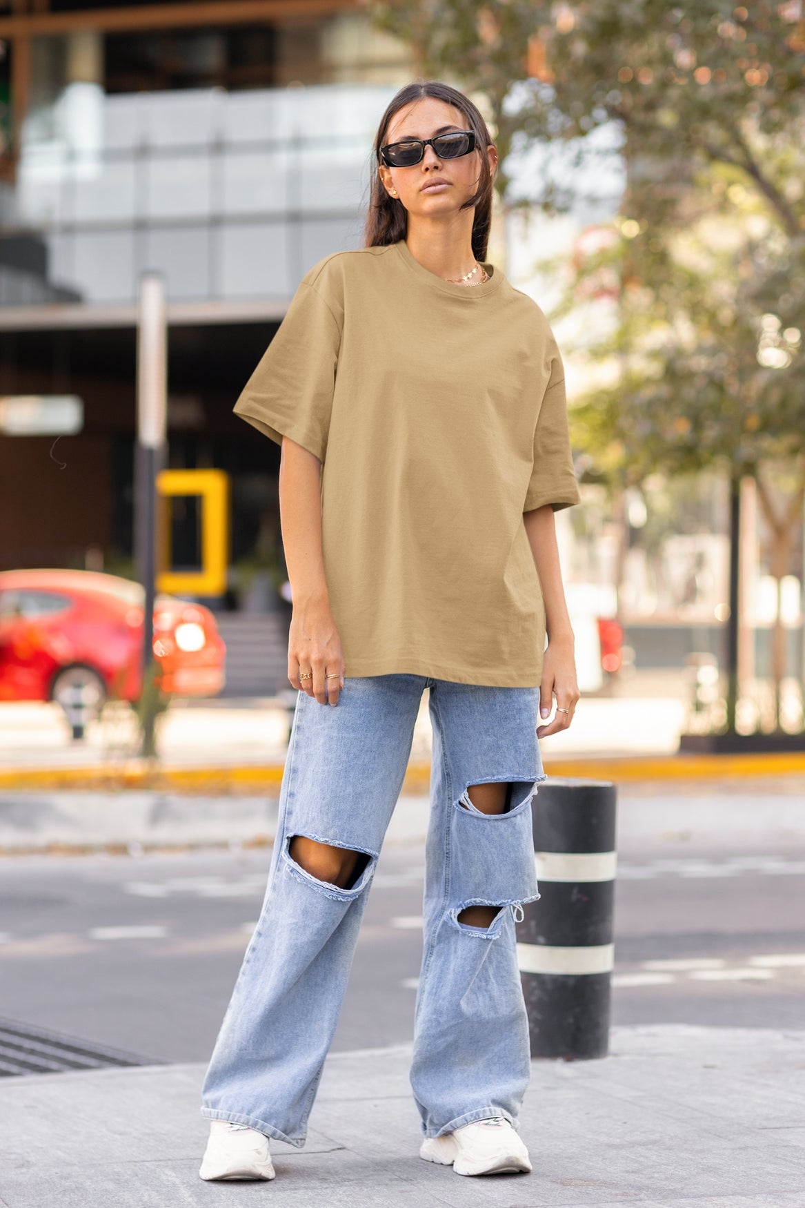 Women's Oversized T-shirt in Solid Beige